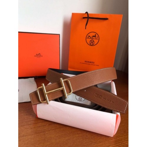 Hermes Royal 38MM Reversible Belt In Brown Clemence Leather