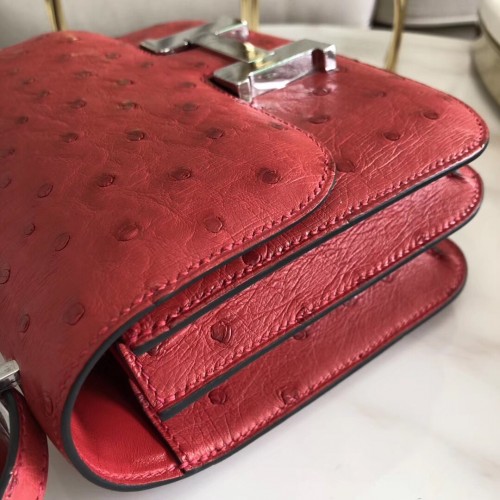 Hermes Mini Constance 18cm Red Ostrich Leather