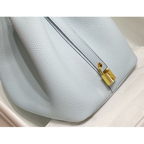 Hermes Picotin Lock 22 Bag In Blue Brume Clemence Leather