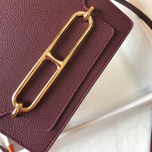 Tags: Hermes Mini Sac Roulis 18cm Bag In Burgundy Evercolor Calfskin, Roulis Bag