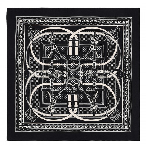 Hermes Black Grand Manege Bandana Shawl 140cm