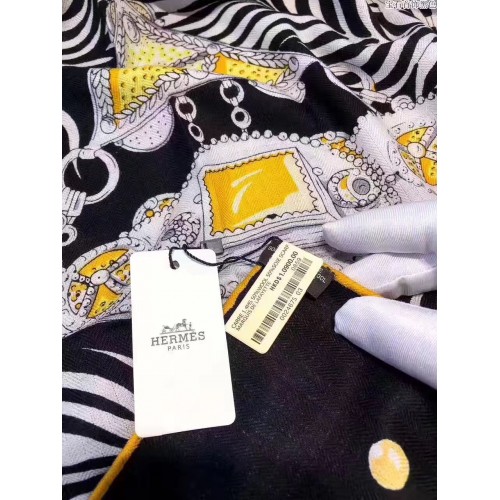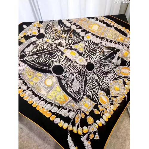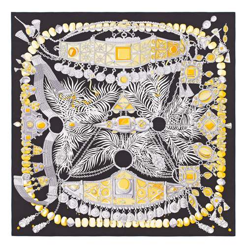 Hermes Black Parures Precieuses Silk Shawl