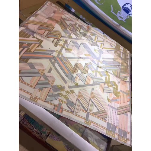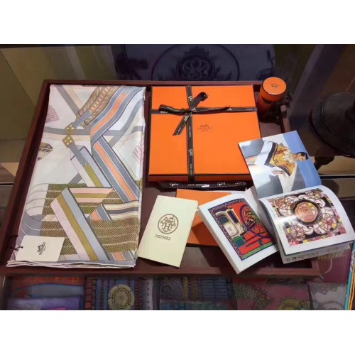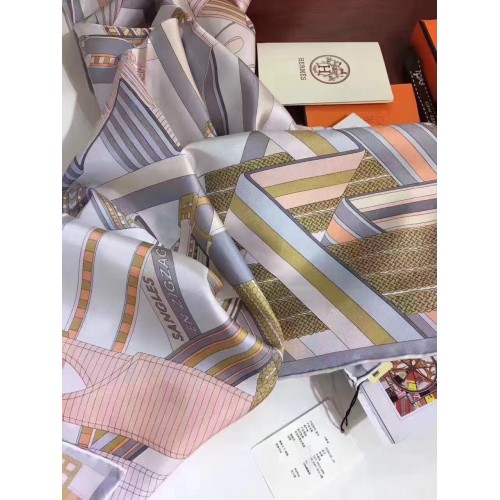 Hermes Blanc Sangles en Zigzag Silk Scarf