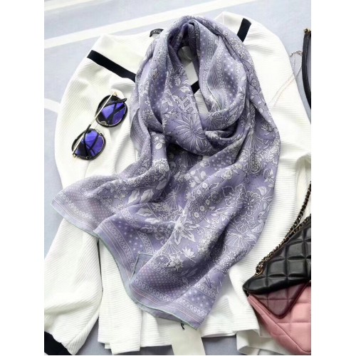Print stole in 100% silk chiffon, this Hermes Fleurs et Papillons de Tissus Bandana will accessorize..
