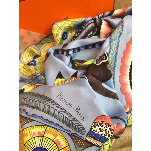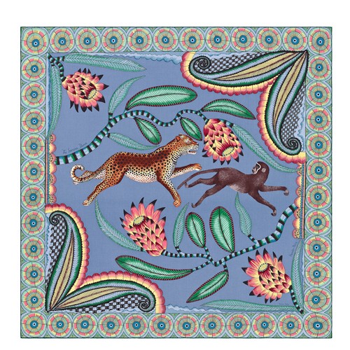 Hermes Blue Flowers of South Africa Silk Scarf