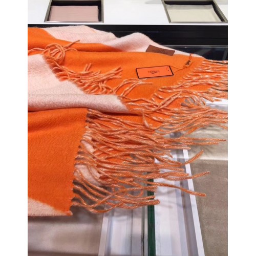 Hermes Casaque Stole In Beige And Orange Cashmere