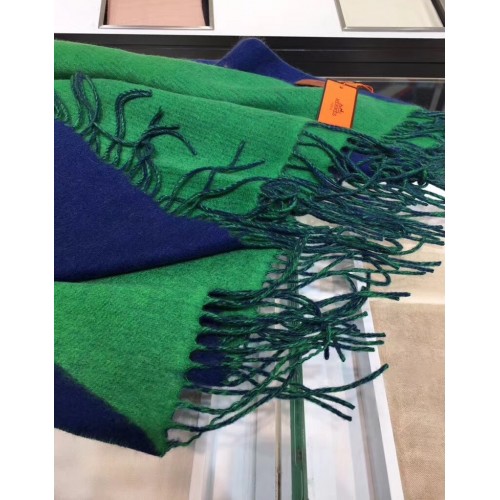 Hermes Casaque Stole In Green And Black Cashmere