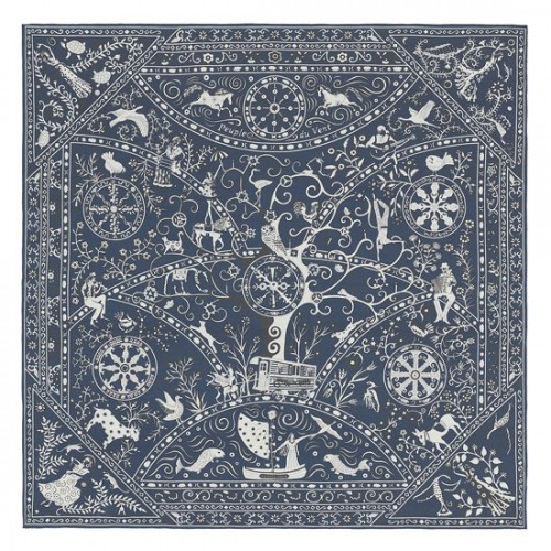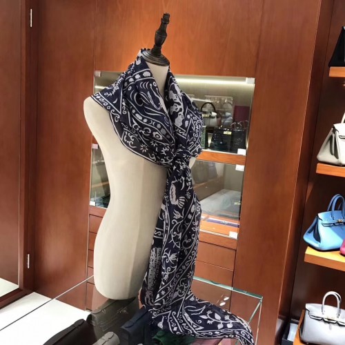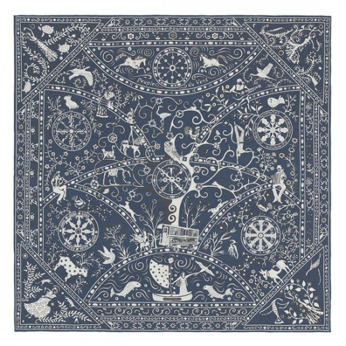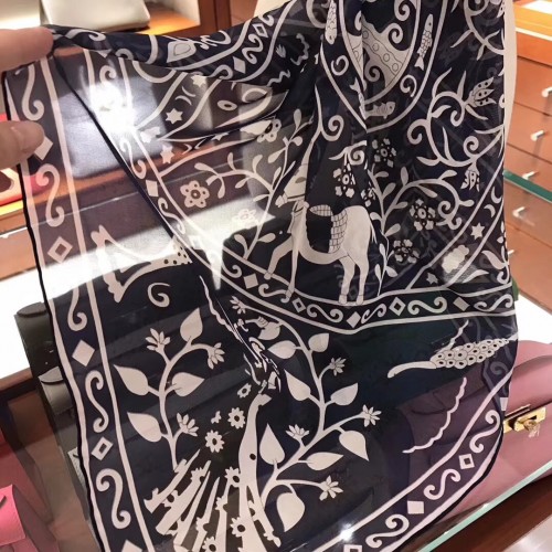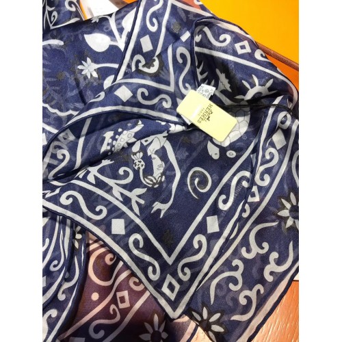Hermes Navy Peuple du Vent Bandana Shawl