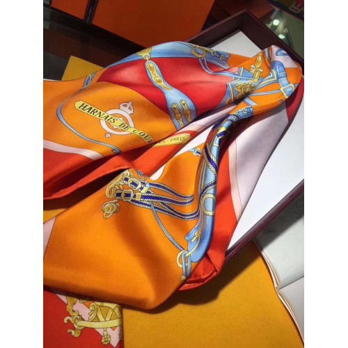 Hermes Orange Harnais De Cour Scarf 90