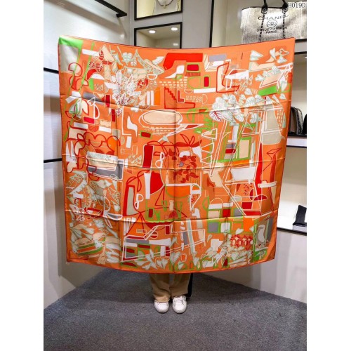 Hermes Orange Modernisme Tropical Scarf 140cm