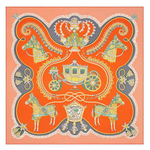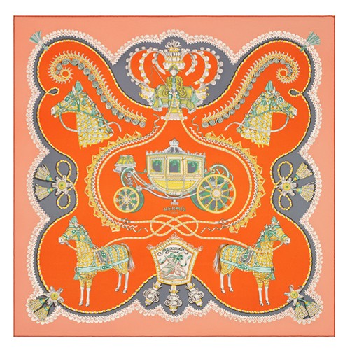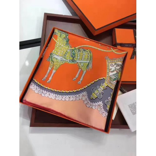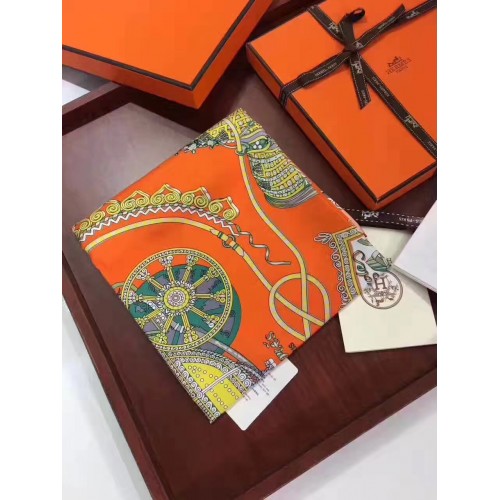 Hermes Orange Paperoles Silk Twill Scarf