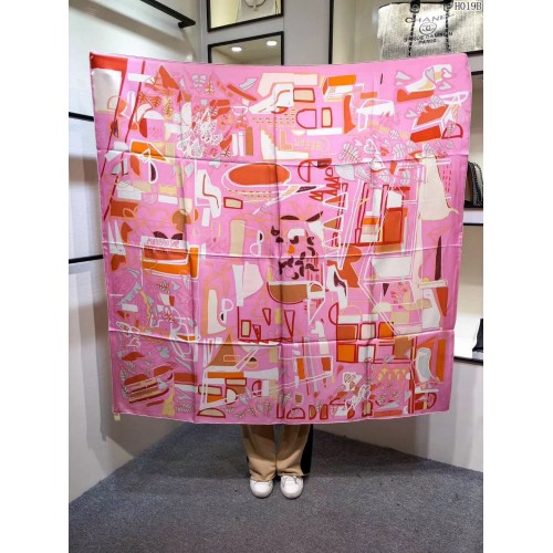 Hermes Pink Modernisme Tropical Scarf 140cm