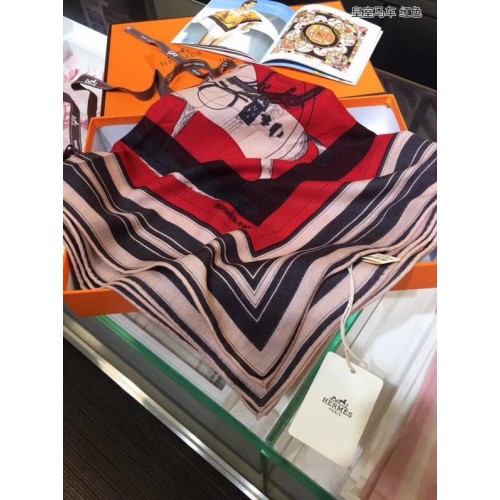 Hermes Red H Imprimeur Fou Couvertures d'Ex-Libris Shawl 140cm