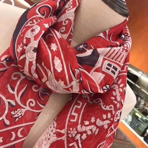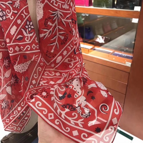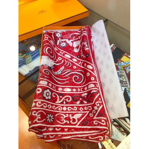 Hermes Red Peuple du Vent Bandana Shawl