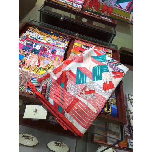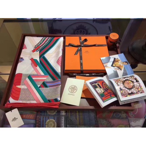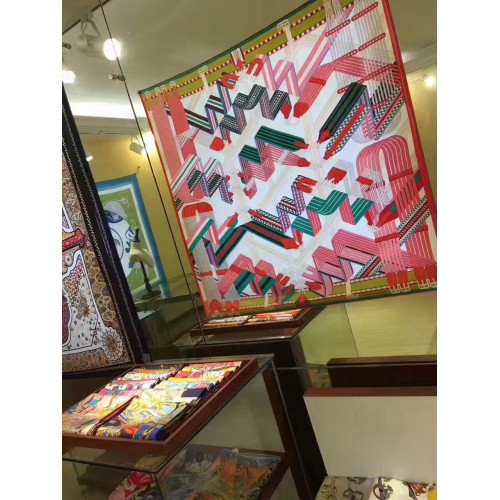 Hermes Blanc Sangles en Zigzag Silk Scarf