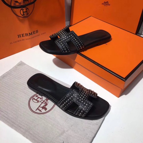 Hermes Oran Studs Sandals In Black Leather