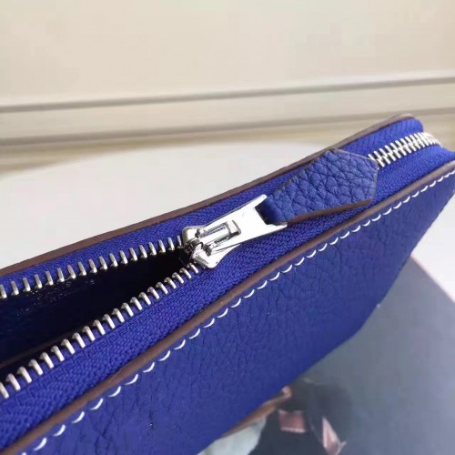 Hermes Blue Electric Clemence Azap Zipped Wallet