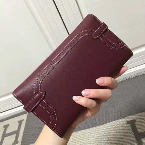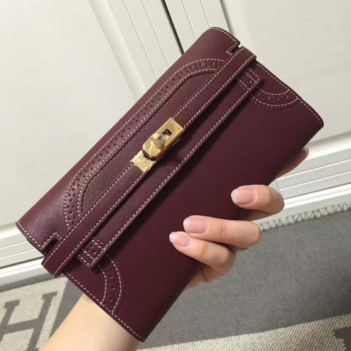 Hermes Kelly Ghillies Wallet In Bordeaux Swift Leather