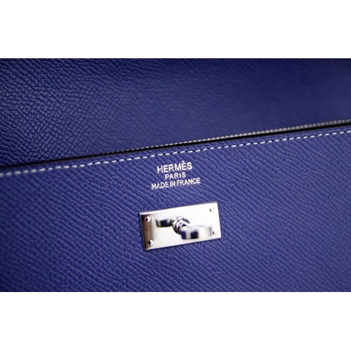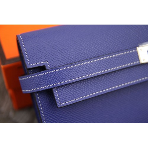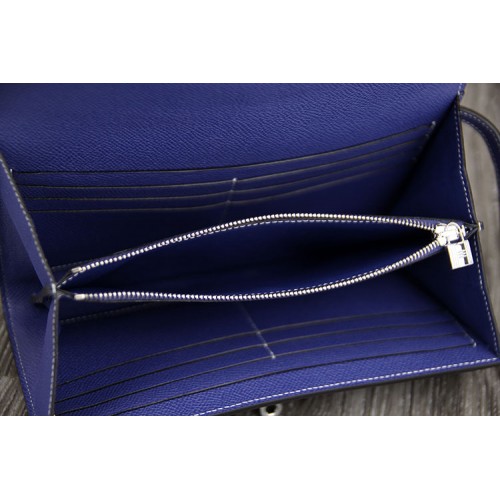 Hermes Kelly Longue Wallet In Blue Lin Epsom Leather