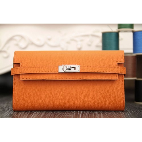 Hermes Kelly Longue Wallet In Orange Epsom Leather