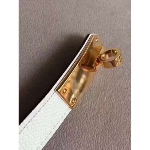 Hermes White Epsom Kelly Belt With Gold Hardware