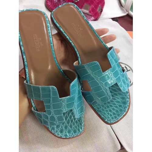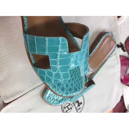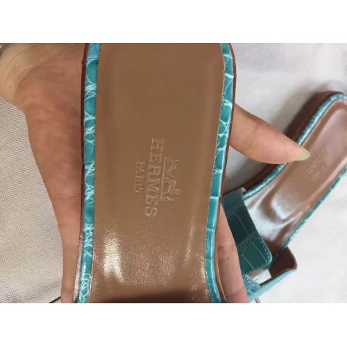 Hermes Blue Crocodile Oran Sandals