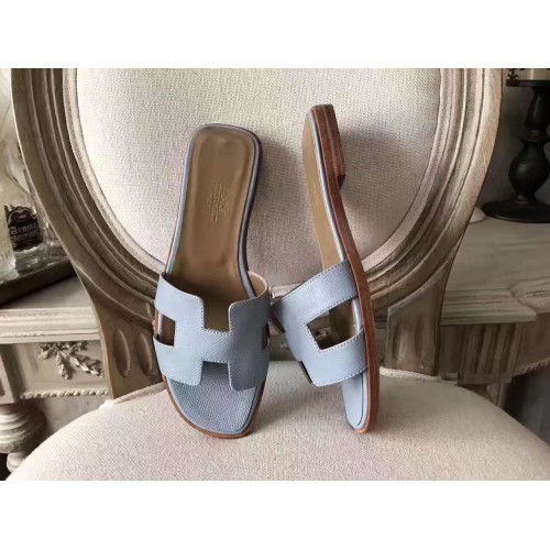 Hermes Oran Sandals In Blue Lin Epsom Leather