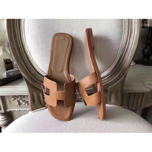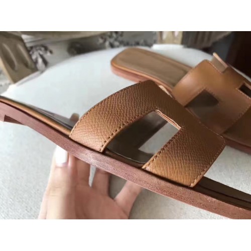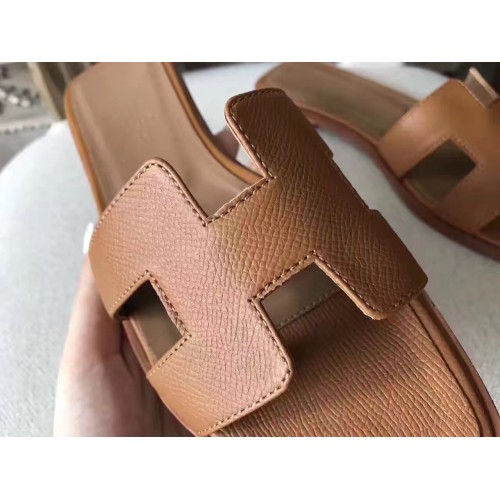 Hermes Oran Sandals In Bamboo Epsom Leather
