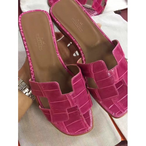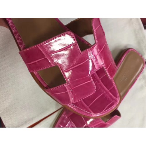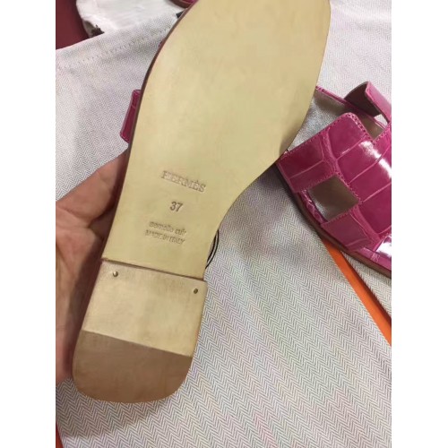 Hermes Rose Red Crocodile Oran Sandals