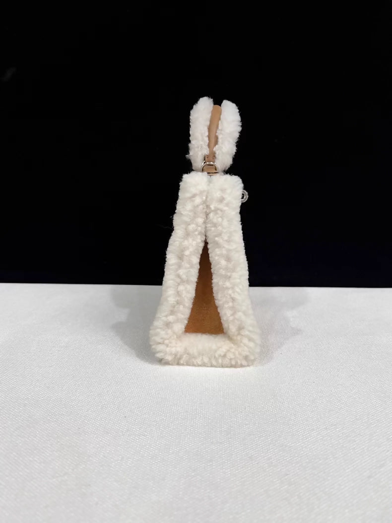 Hermès Teddy Mini Kelly 20 Chamois Grizzly, Alezan Swift and Ecru Mouton Shearling Palladium Hardware