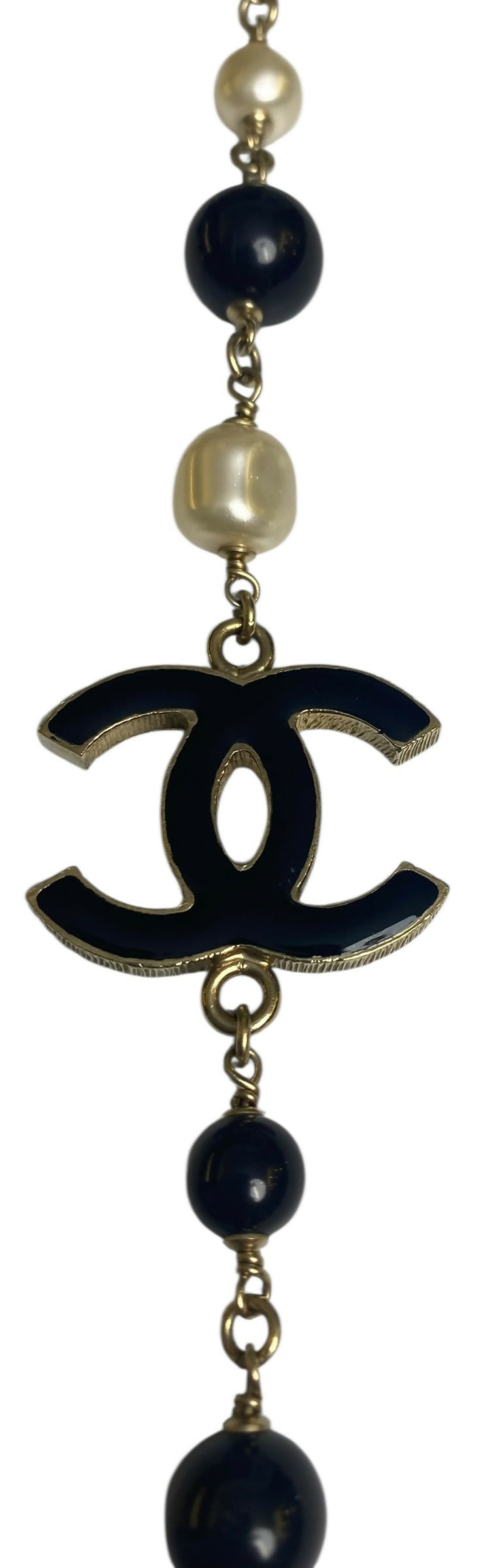 Chanel 12P Classic Long Strand Black White Freshwater Pearl and Bead Necklace GHW