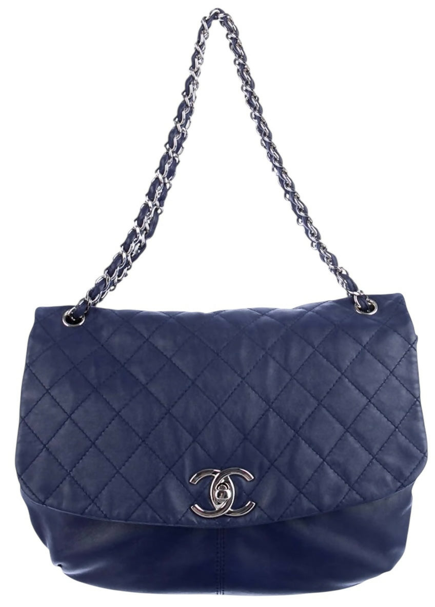 Can be worn over the shoulder or crossbody. It is crafted from extra soft lambskin leather and features a single flap top with signature quilted pattern and is secured with a silver tone turn-lock CC closure. The interior is equipped with two compartments, very spacious.