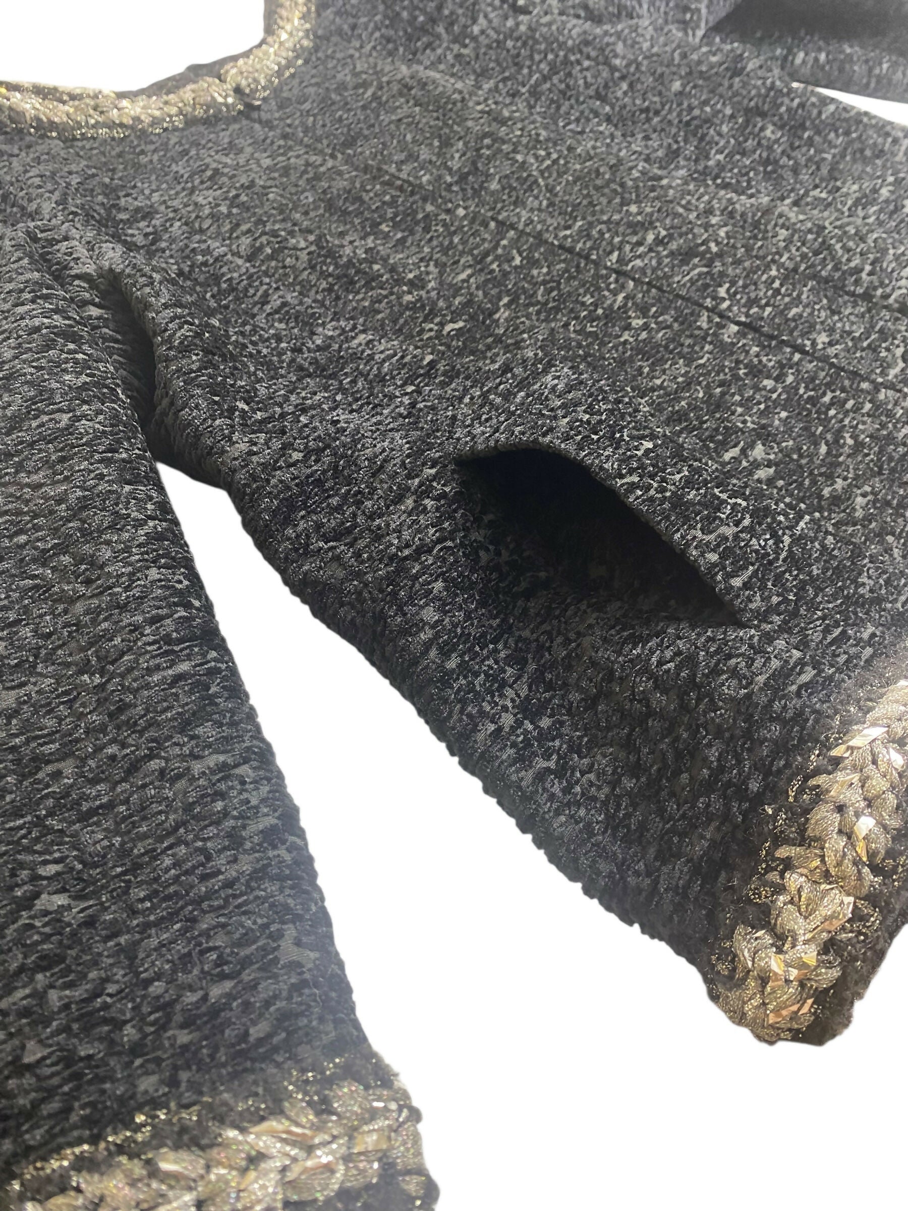 Chanel 14A Runway Supermarket Collection Black Boucle Silver Metallic Braided Trim Jacket 42