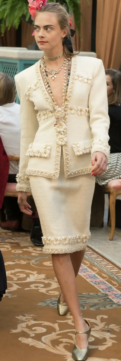 From the Chanel 2017 Pre-Fall Ritz Cosmopolite Metier D Art Collection by Karl Lagerfeld. The Key necklace was featured on Look #1 of the Collection on Model Cara Delevingne.