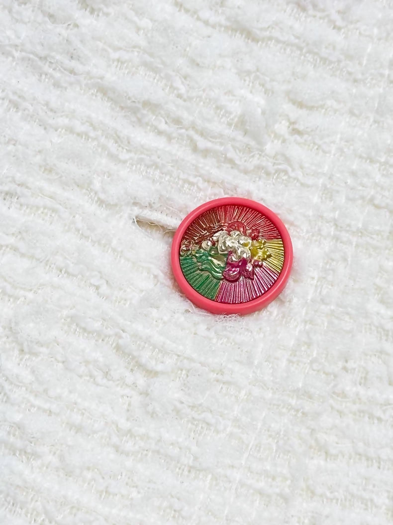 Chanel 17P white tweed jacket with pink lion button