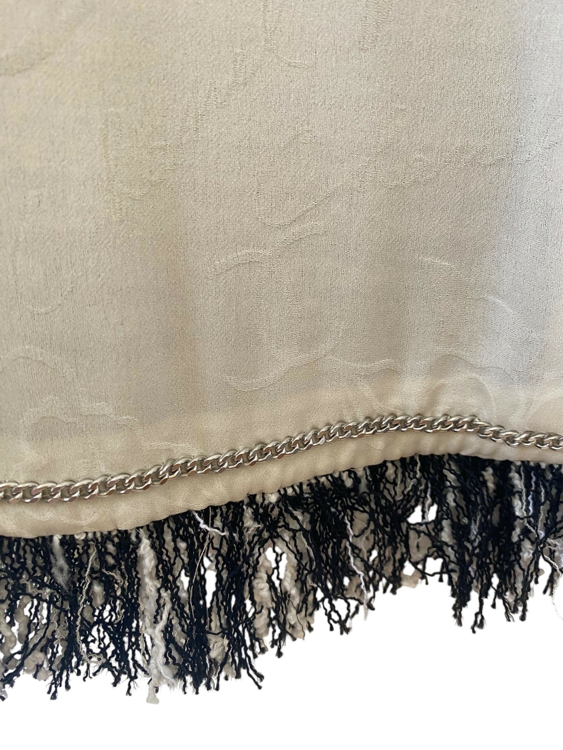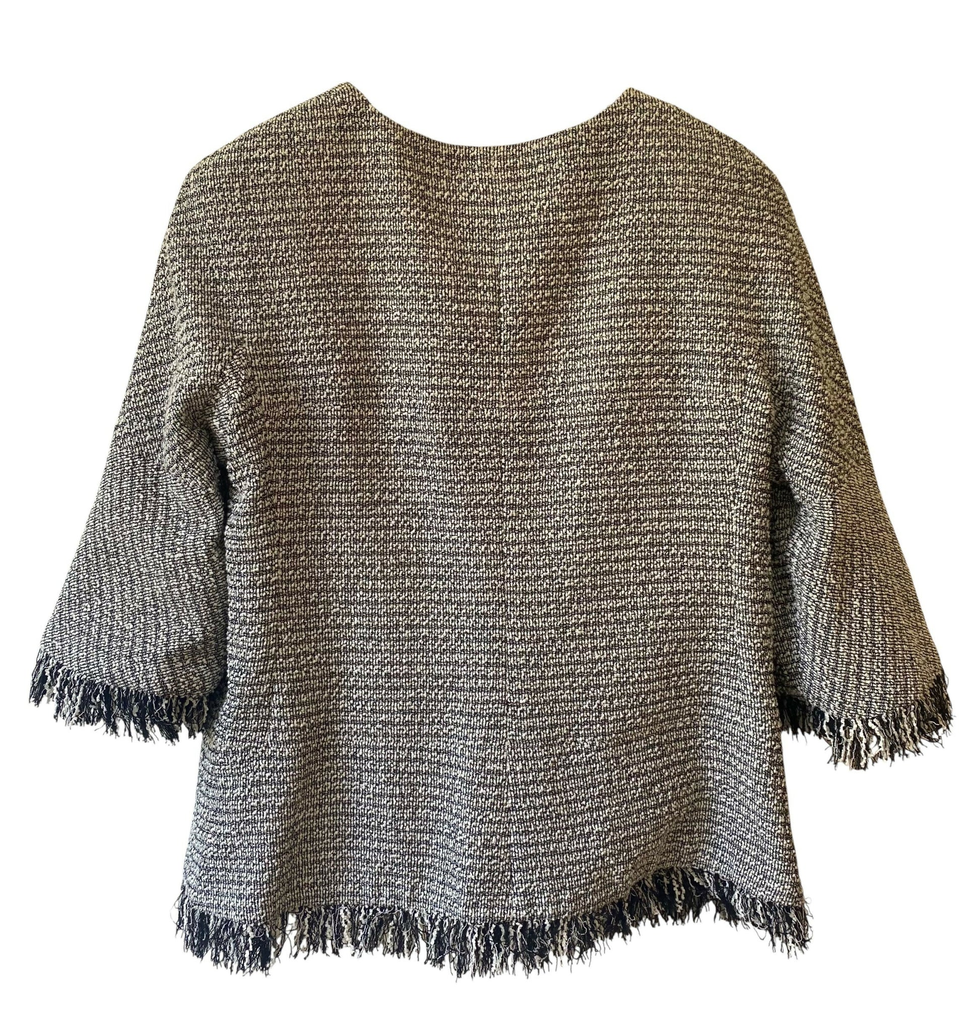Chanel 18P Black White Tweed Fringe Jacket FR 44