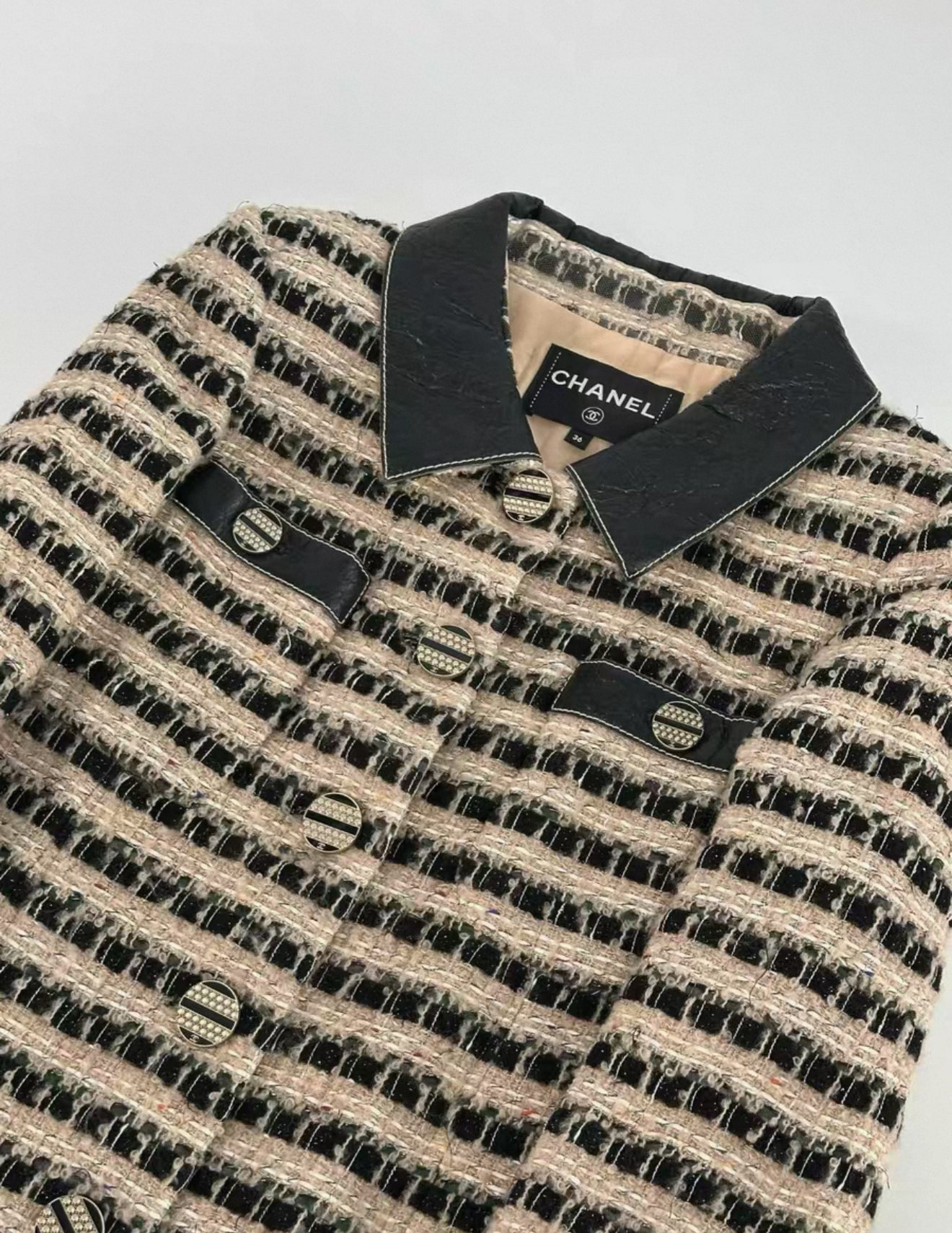 This exquisite Chanel 19A Egypt Collection Black and Gold tweed Jacket is a must-have for any fashion-forward individual. With its rare and unique design, it is truly a statement piece that will elevate any outfit. Made with the highest quality materials, this jacket exudes luxury and sophistication. Own a piece of fashion history with this stunning jacket.