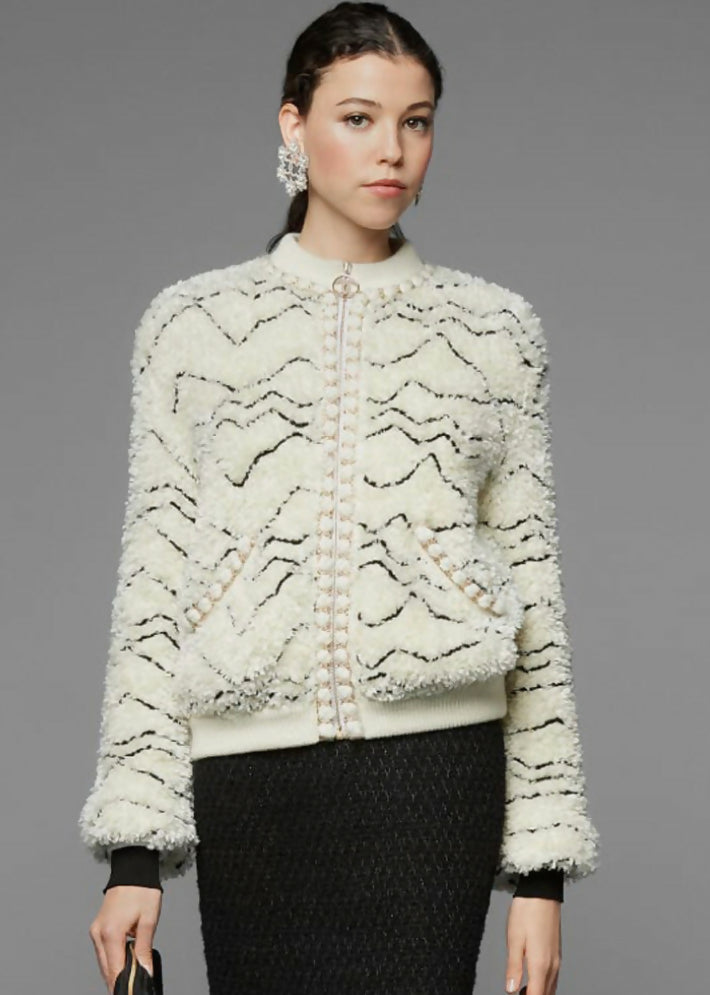 This fluffy material has a lovely thickness and the rounded shape typical of CHANEL makes this soft jacket really special. With alpaca blended in, it’s super warm. Perfect for the upcoming chilly season.