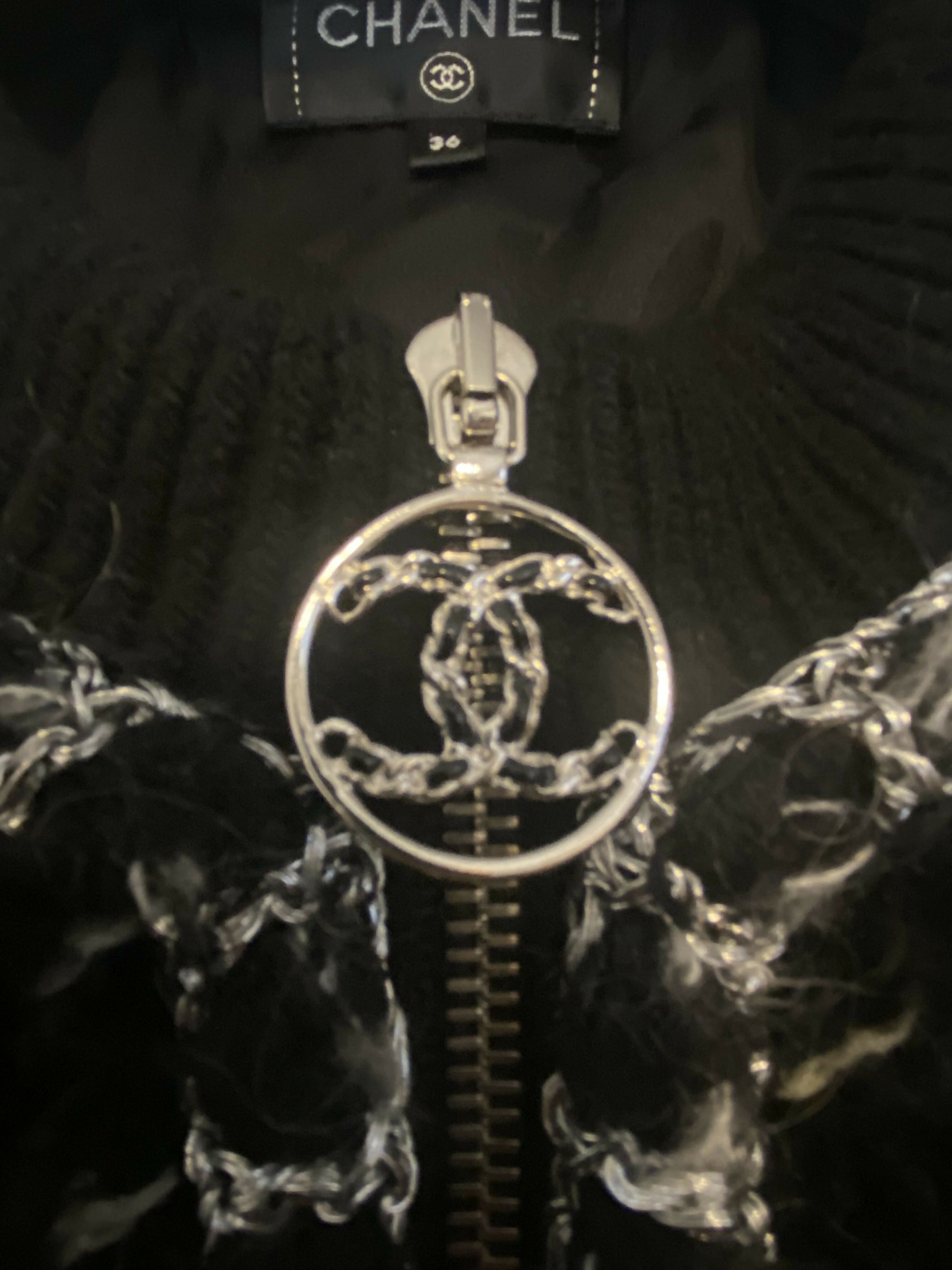 CHANEL 19B Black Alpaca CC Zipper Bomber Jacket Coat FR 36