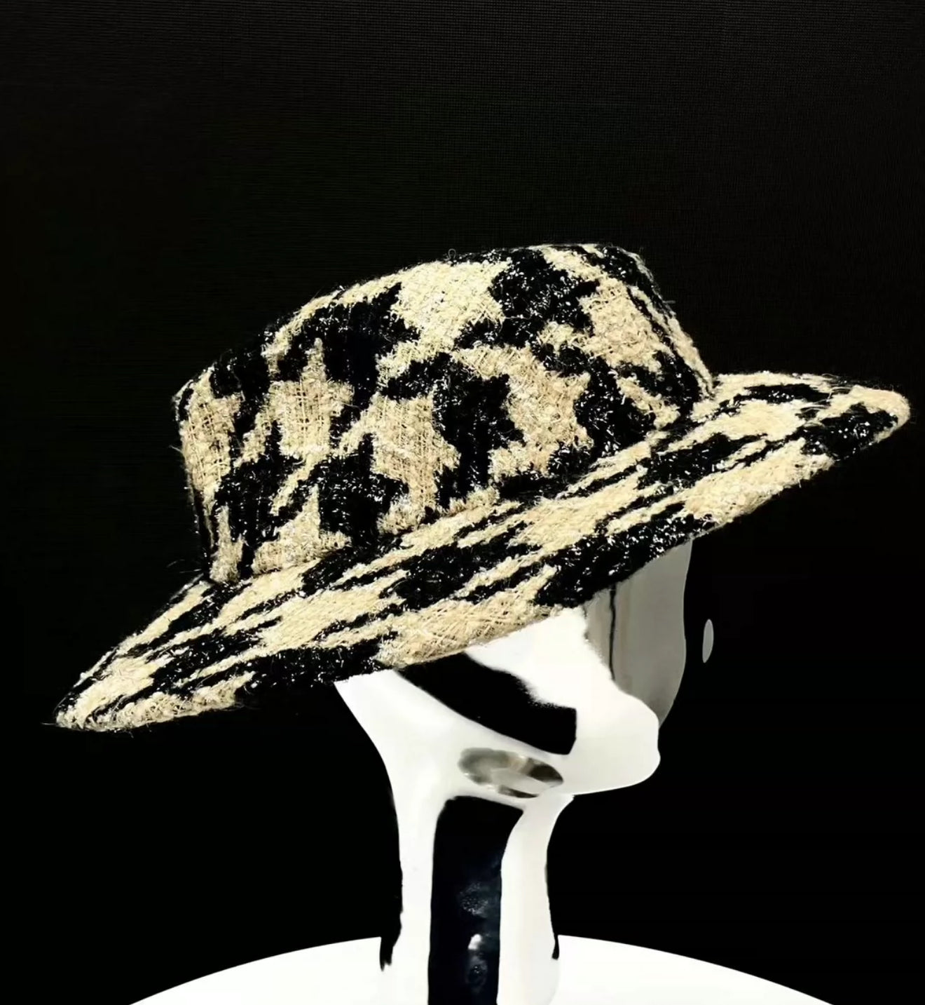 Chanel 19K Beige Black Tweed Fedora Hat