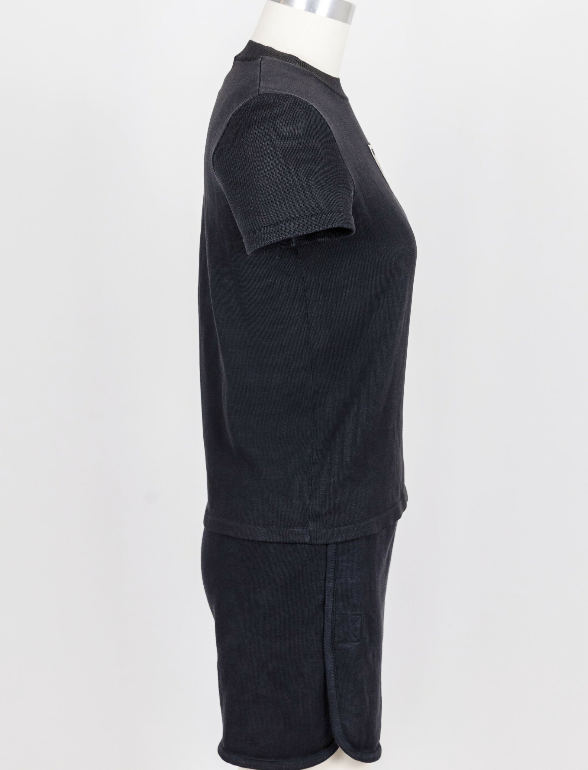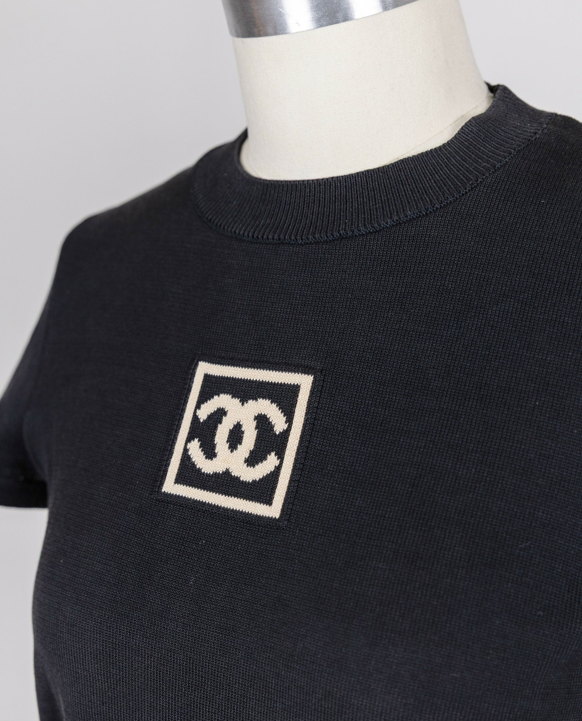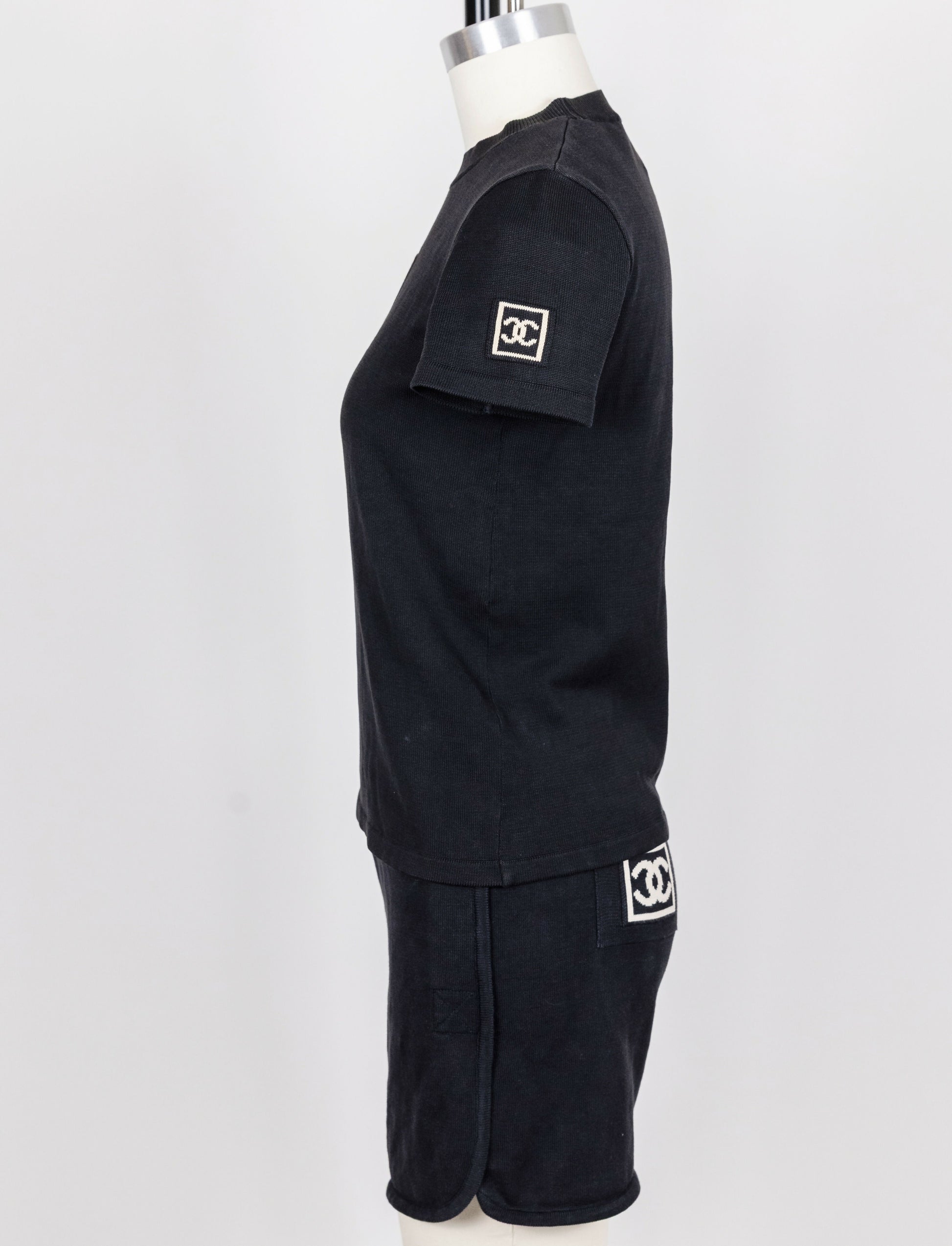 A rare matching t-shirt and shorts set from Chanel's vintage archives, crafted in soft navy cotton with bold CC logo patches on the chest, sleeve, and shorts. Casual, sporty, and unmistakably Chanel, this set is perfect for off-duty days with an elevated edge.