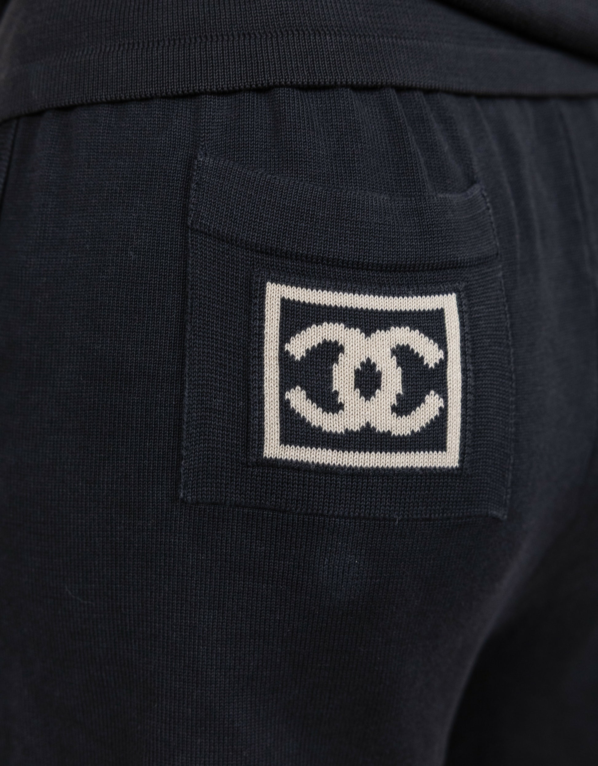Chanel 2003 Vintage Navy Blue Knit Logo Lounge Set