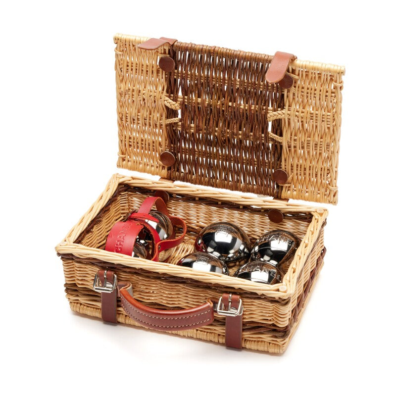Discover this exceptional Chanel 2010 Limited Edition Wicker Basket Petanque set, a rare collectible that merges leisure and luxury. Crafted with signature wicker construction and polished silver hardware, this whimsical piece exemplifies Chanel's playful approach to haute couture accessories. In excellent condition, it remains a coveted conversation piece for discerning collectors and those who appreciate the house's distinctive design heritage. A testament to Chanel's creative vision during a landmark year in the brand's evolution.