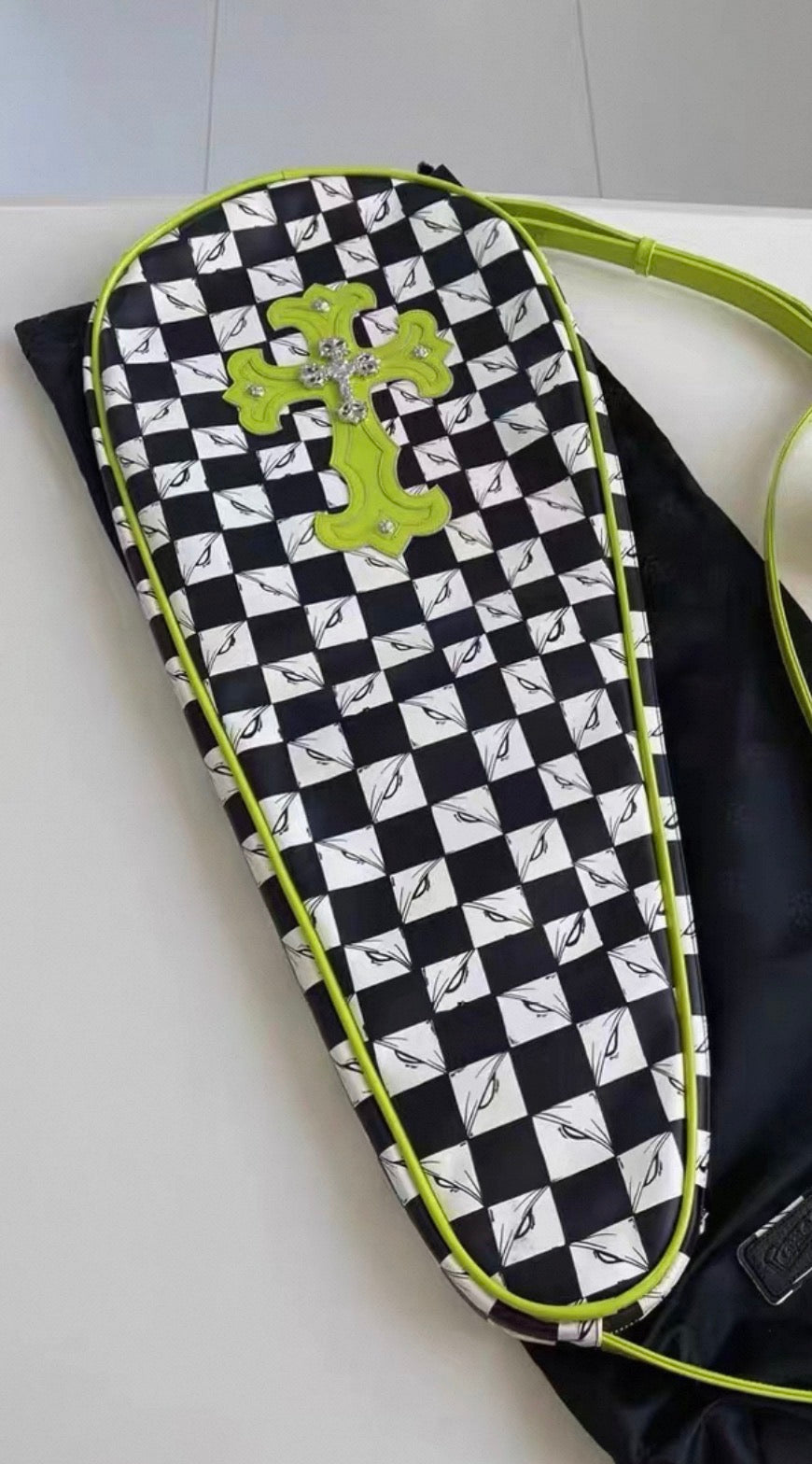 The Chrome Hearts Matty Boy 99 Eyes Leather Tennis Case bag is a rare accessory designed for discerning collectors and enthusiasts. Its limited availability enhances its value, making it a unique addition to any collection while providing durable protection for tennis equipment.