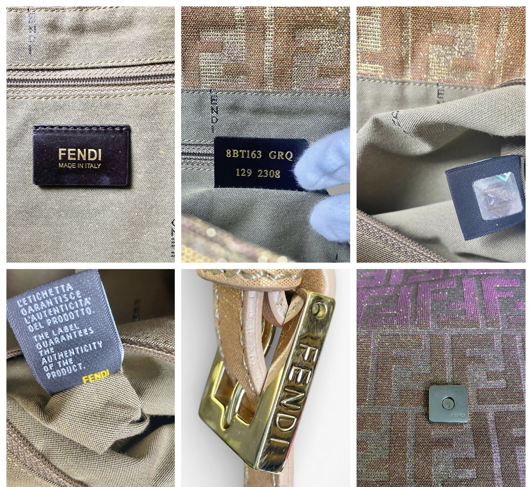 One of the most stunning Fendi bags I have seen in person! Pink gold with an iridescent shimmering glittery shine and gold hardware. It Changes color with each way the light hits!