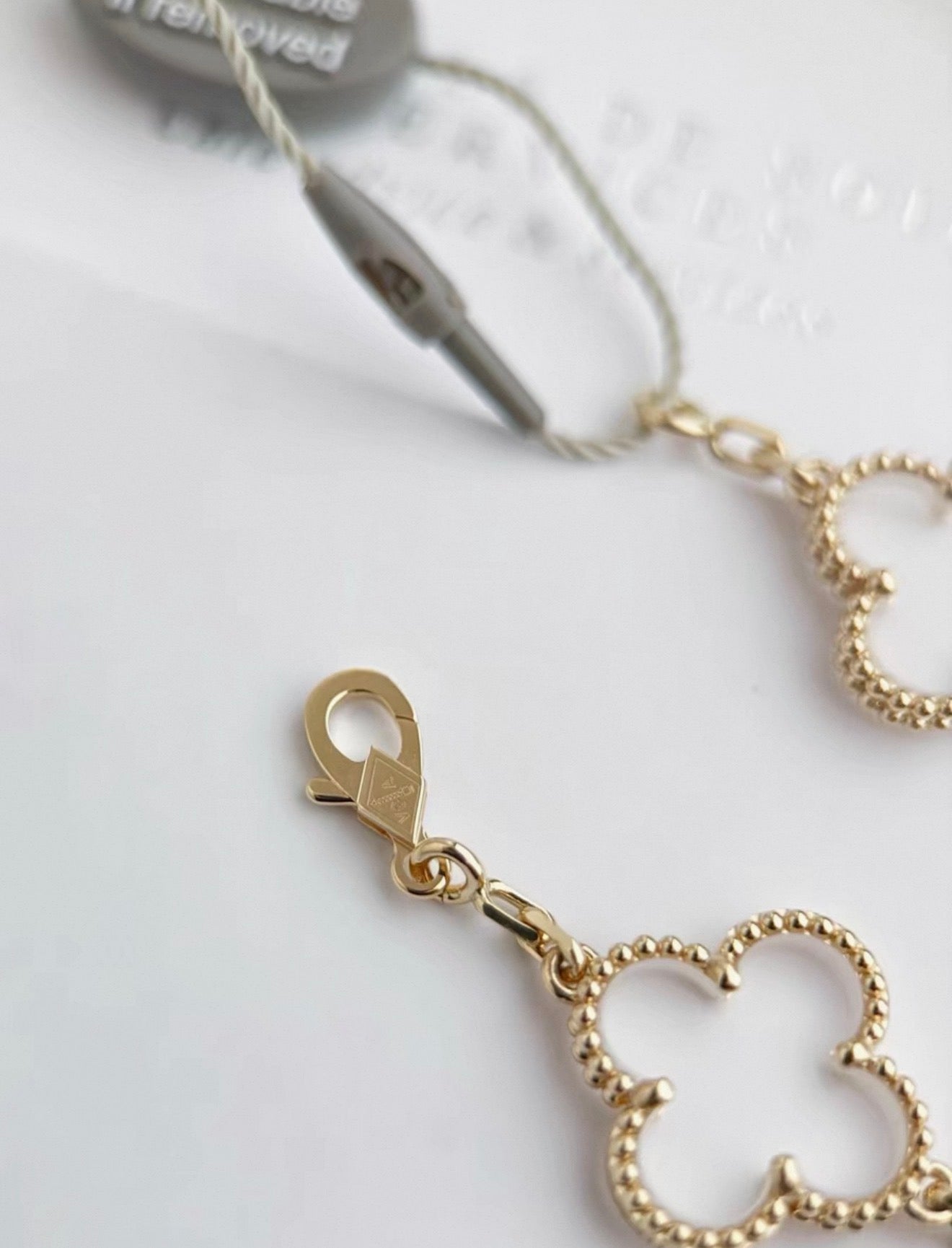 VAN CLEEF & ARPELS 18K Yellow Gold Rock Crystal 5 Motifs Vintage Alhambra Bracelet